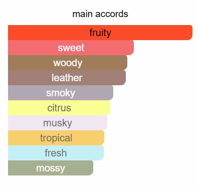 Top notes: blackcurrant, bergamot, apple and pineapple. Heart: rose, dry birch, Moroccan jasmine and patchouli. Base: oak moss, musk, ambergris, and vanilla.